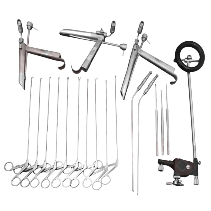 The Microlaryngeal Surgery Set is engineered for delicate operations on the vocal cords and larynx, including polypectomy, tumor excision, and biopsy. These instruments are optimized for microsurgical precision under a laryngoscope, ensuring minimal trauma to delicate laryngeal tissues.