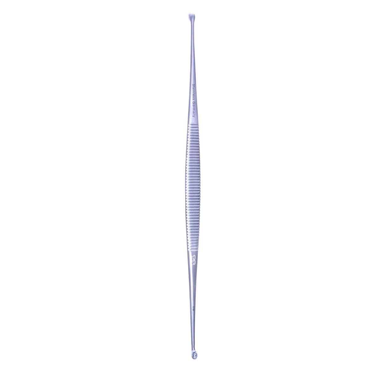 The Martini Bone Curette 5½” Round 2.5x3mm Double Ended is designed for fine neurosurgical curettage. With two small round curette heads (2.5mm and 3mm), it provides versatility and precision in delicate bone and tissue removal.