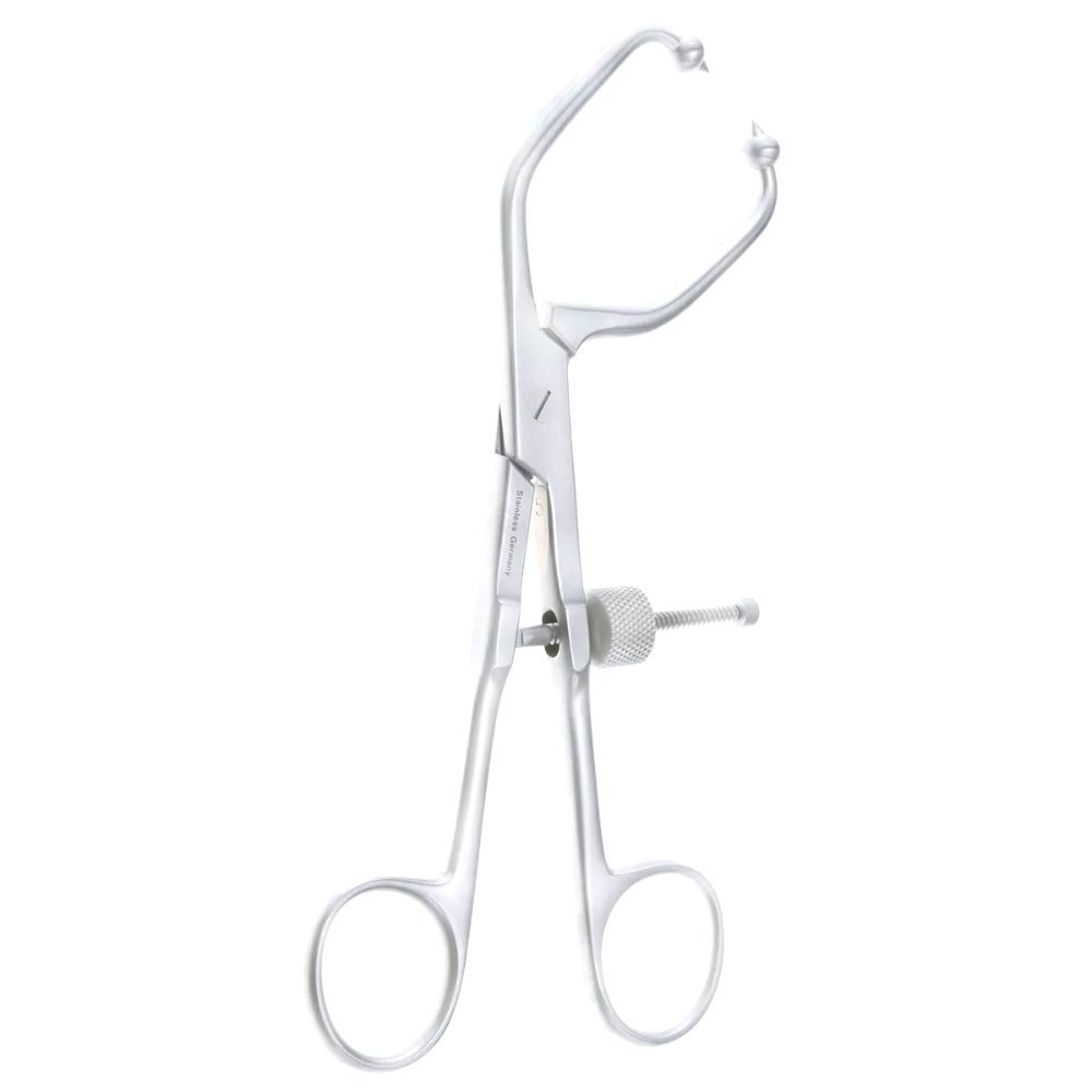 The Neurosurgery Surgical 7⅜” Pelvic Reduction Forceps, Angled, Pointed, are meticulously crafted instruments designed for firm, precise reduction of bone fragments in pelvic, acetabular, and reconstructive surgeries. The pointed jaw design ensures exact engagement with bone surfaces for secure fixation during alignment and reduction. The angled configuration enhances access to anatomically challenging regions, allowing superior visibility and control. The double-action mechanism ensures consistent clamping strength while minimizing surgeon fatigue. Constructed from surgical-grade stainless steel, these forceps offer exceptional durability, resistance to corrosion, and reliability during repeated sterilization cycles.