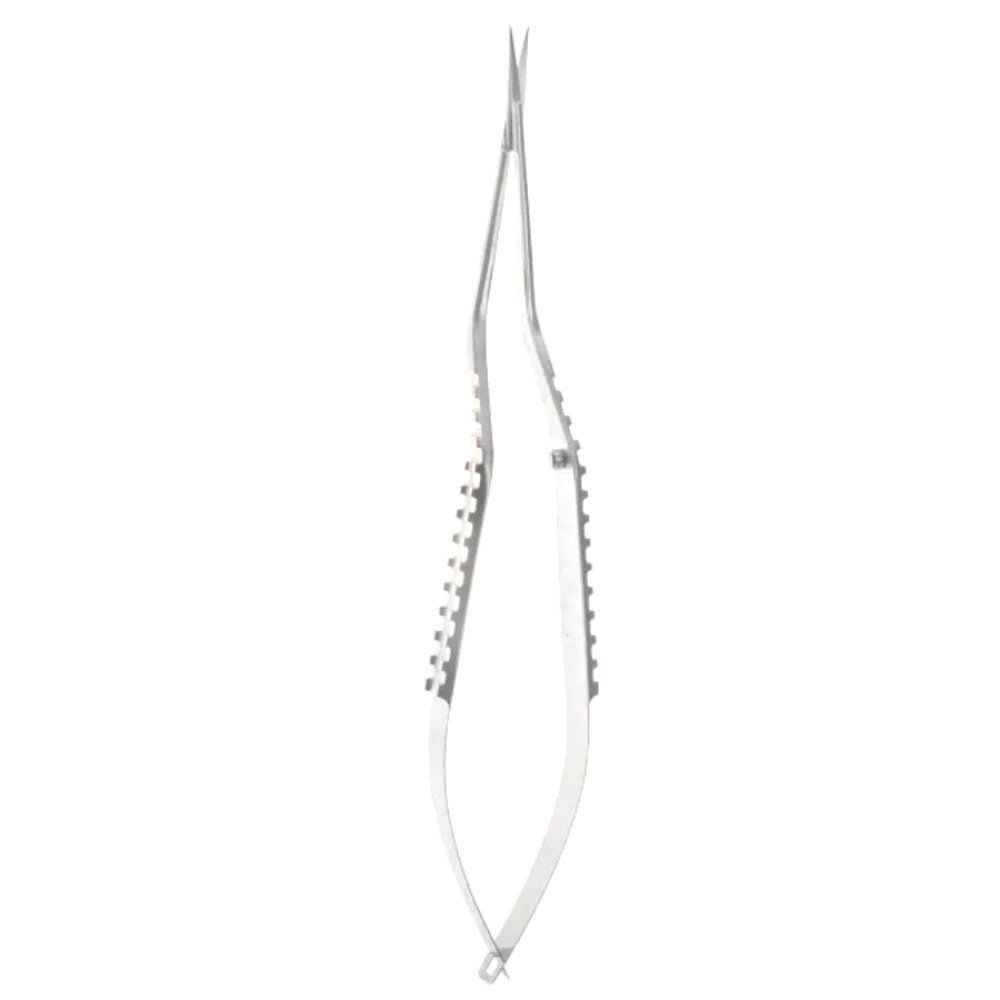 The Neurosurgery Surgical 9 1/4″ Micro Scissors – Serrated Bayonet Blades, Curved Up are expertly designed for microsurgical dissection under magnification. The bayonet handle configuration enhances visibility by keeping the surgeon’s hand clear of the optical path, while the curved-up, serrated blades provide superior control for tissue cutting and separation.