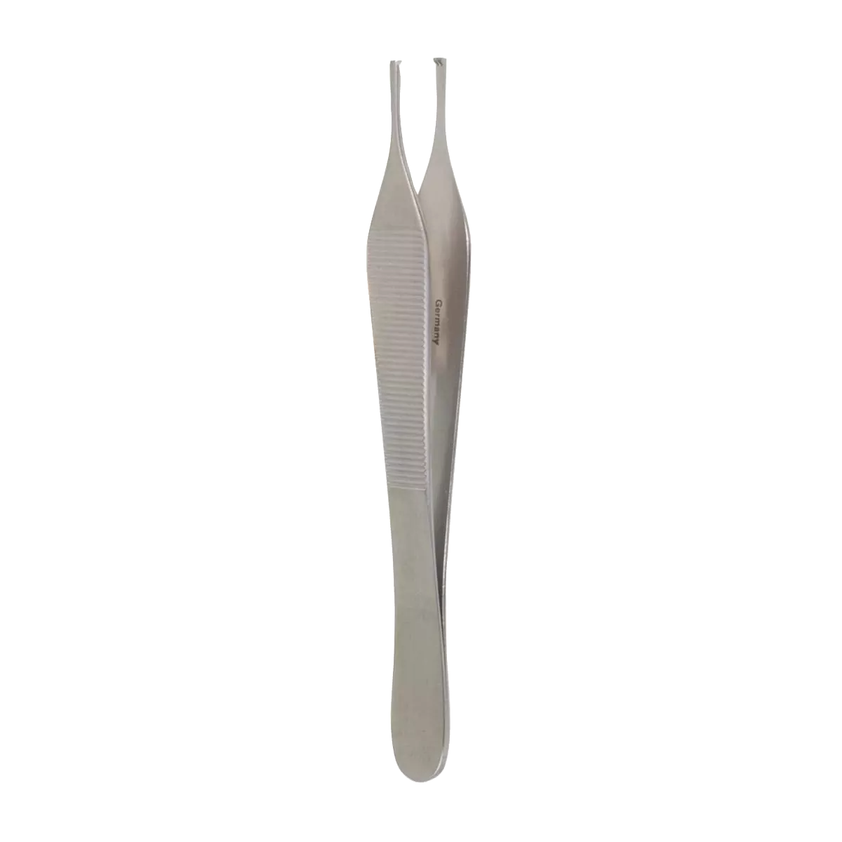 The Neurosurgery Surgical Adson Delicate Tissue Forceps, 4¾″ – 2×3 Teeth are crafted for secure tissue manipulation in microsurgery where slightly greater grasping power is required. The 2×3 toothed design enhances tissue hold without increasing trauma, making it suitable for fine dissection and retraction of neural or vascular structures. Its slim, tapered tips and lightweight construction ensure steady control during delicate maneuvers.