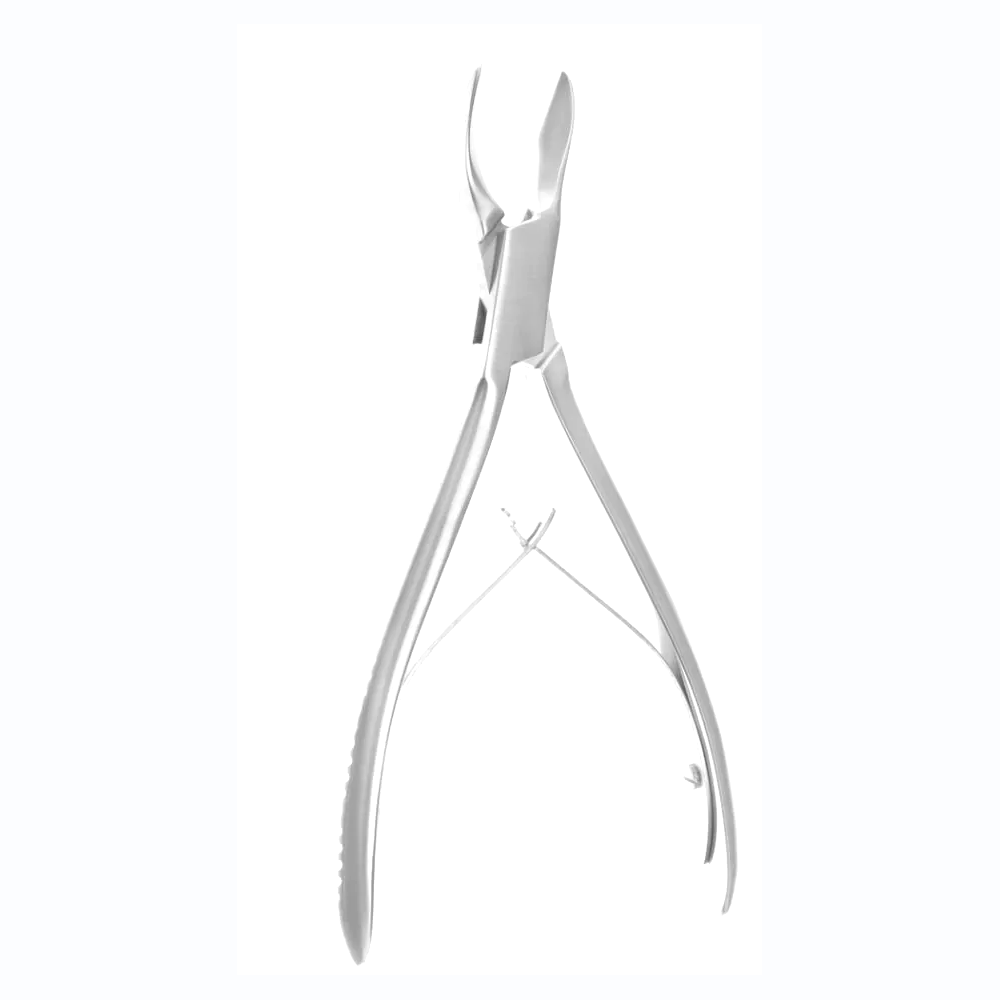 The Neurosurgery Surgical Bone Cutting Rongeur – Angled Blades, 6¾″ is a compact, high-precision surgical instrument designed for controlled bone trimming in orthopedic, ENT, and neurosurgical applications. Its angled cutting blades enable precise access to confined or irregular surgical sites, ensuring efficient bone removal with minimal trauma to adjacent tissue. The double-action mechanism enhances mechanical leverage, providing smooth and powerful cutting performance. Crafted from surgical-grade stainless steel, this rongeur ensures durability, corrosion resistance, and long-term reliability. Ideal for use in delicate cranial, spinal, and reconstructive procedures requiring angled access.
