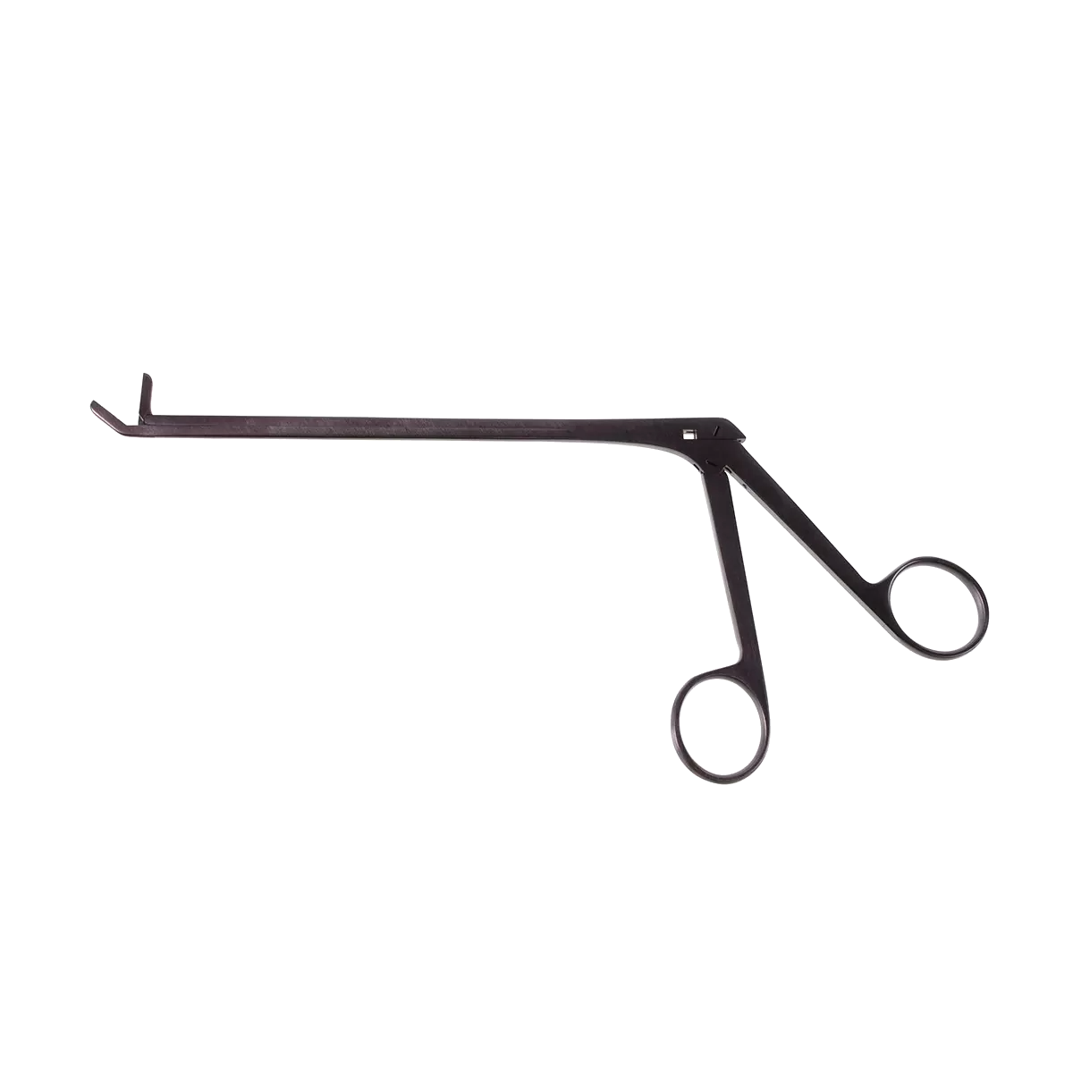 The Titanium Cushing IVD Rongeur (2×10 mm, Up-Angled) is designed for controlled removal of intervertebral disc or bony tissue in confined or deep spinal spaces. The up-angled 2×10 mm jaws provide enhanced access and visibility to hard-to-reach areas, while ensuring smooth, efficient cutting. Built from lightweight titanium, this rongeur offers exceptional balance, reduced surgeon fatigue, and full resistance to corrosion. Its satin matte finish prevents glare under surgical illumination, and its ergonomic handles provide a steady, comfortable grip throughout extended procedures.