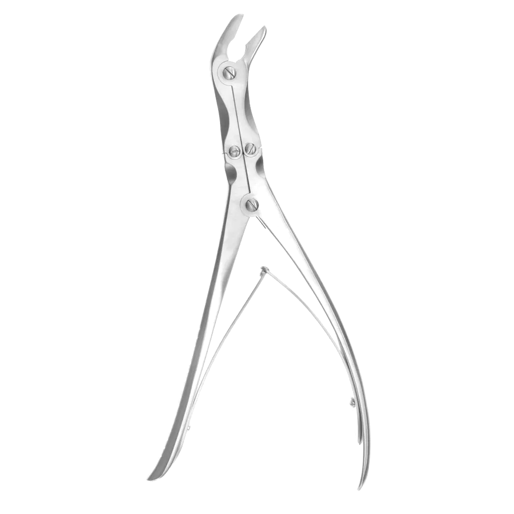 Its 50° angled jaw allows surgeons to approach laminae and foramen at steeper, more natural working angles — essential in thoracic and cervical decompression procedures.