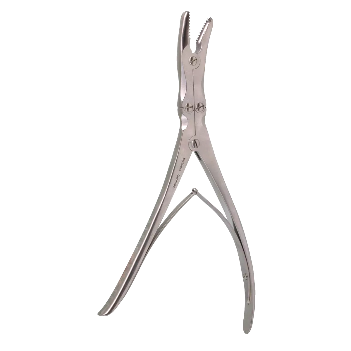 Its 15° curved jaws allow improved access to contoured anatomical surfaces, while the serrated (toothed) bite provides enhanced bone grip and controlled resection during dense or irregular cortical engagement.