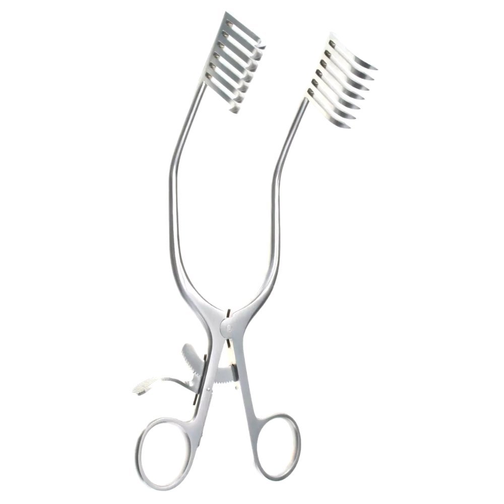 This retractor features an advanced ratchet-lock mechanism that allows the surgeon to maintain hands-free operation once the desired tension is achieved. The sharp prongs offer secure anchoring into muscle tissue, reducing the need for frequent adjustments. Its 7½″ overall length provides optimal leverage and access to deeper anatomical regions while maintaining ergonomic comfort.