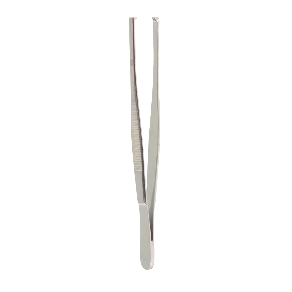 The Neurosurgery Surgical Tissue Forceps, 5½″ – 3×4 Teeth is specifically designed for strong, secure tissue grasping and manipulation during complex surgical procedures. The 3×4 toothed tips deliver a superior hold on fibrous or thick tissue, reducing slippage and enhancing precision. At 5½″ (140mm), this instrument offers excellent control and visibility for confined operative fields. Manufactured from premium surgical stainless steel, it combines strength, fine alignment, and corrosion resistance. Its matte finish reduces glare for a clear surgical view.
