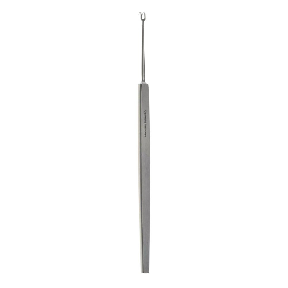 The Ophthalmology Fixation Hook Double Sharp Large is built for cases requiring stronger engagement and wider access in ophthalmic surgery. Its extended sharp tips offer enhanced stability when manipulating extraocular muscles or scleral tissue. With a durable, instrument-grade stainless steel structure, it ensures firm yet precise handling across various ocular procedures.