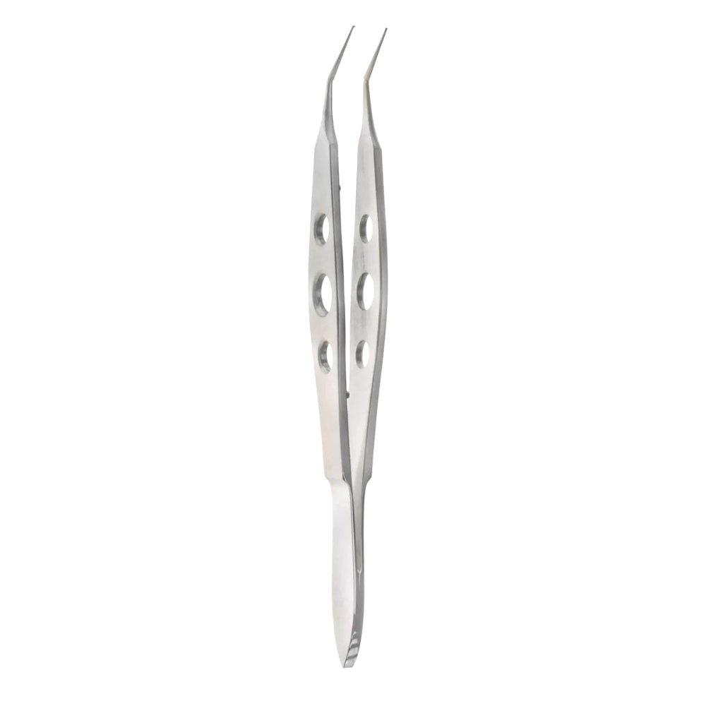 The Ophthalmology Hoffer-McPherson Forceps 1×2 Teeth, 0.12mm with Platform designed for ultra-fine corneal and scleral suturing. The slender 0.12mm tips provide unmatched delicacy and precision, while the tying platform allows efficient suture handling. Manufactured from high-quality stainless steel, these forceps ensure superior durability and consistent performance in microsurgery.