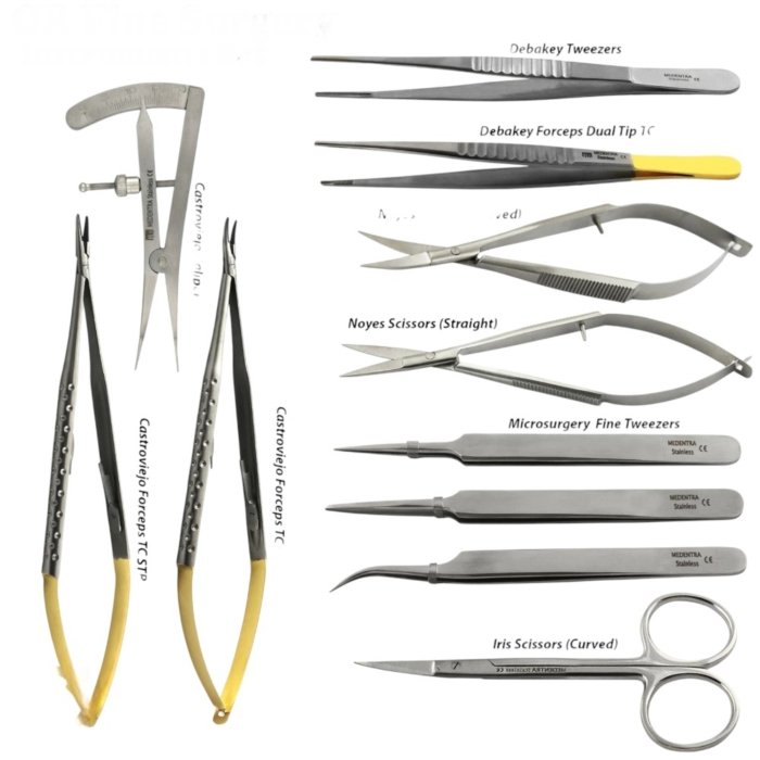 OR Fine Surgery Set – Hand Microsurgery & Plastic Surgery Surgical Instruments is a specialized collection of surgical instruments meticulously designed for hand surgery, reconstructive procedures, plastic surgery, and microsurgery applications. Manufactured from German-grade stainless steel, this set offers unmatched precision, durability, and handling comfort essential for the delicate work required in reconstructive and fine tissue operations.
