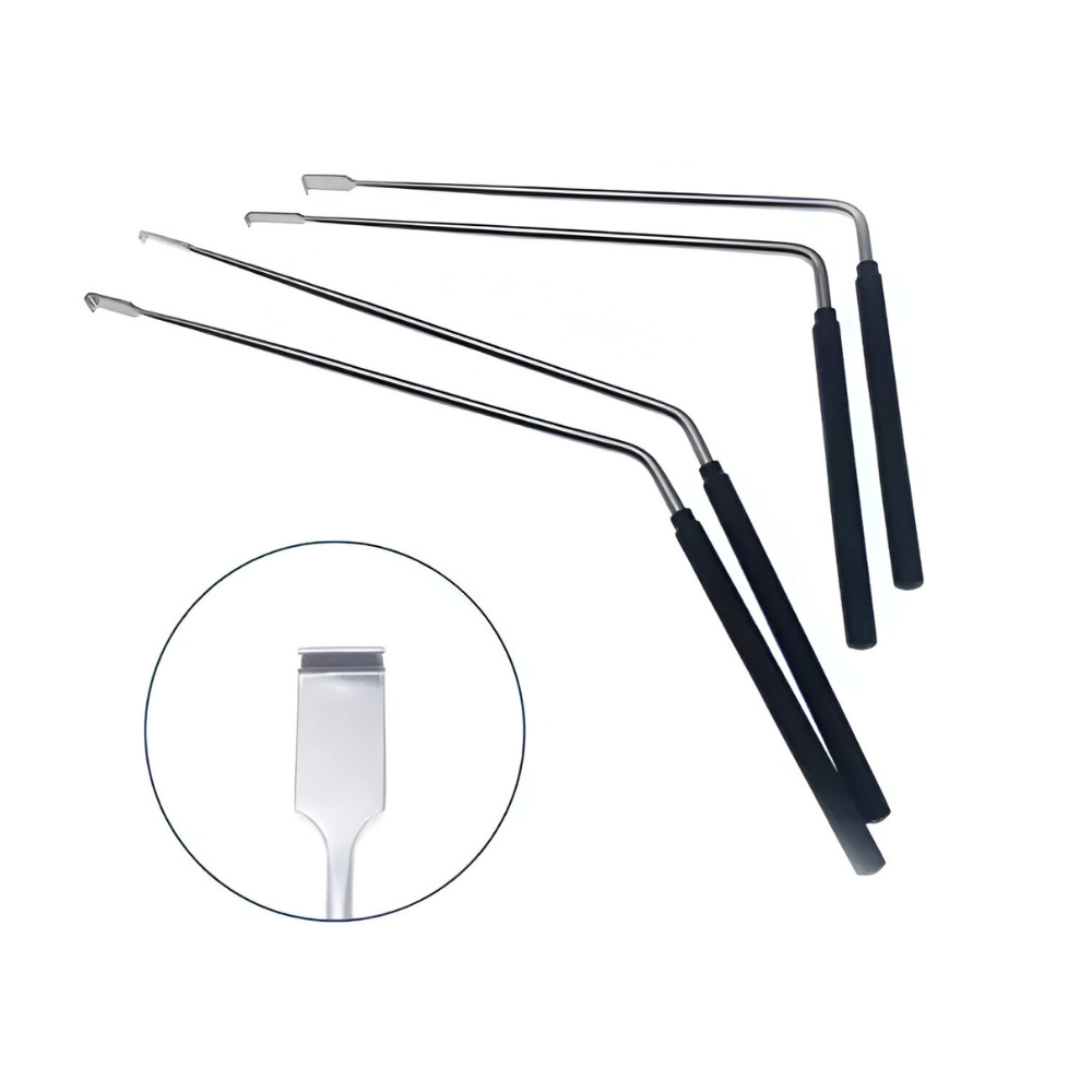 The Orthopedic Nerve Root Hook Retractor Set is a professional 4-piece surgical kit designed to safely retract nerve roots and soft tissue during spinal surgery, decompression procedures, and neurosurgical access. Featuring both 90° and 135° angled profiles, these retractors provide dynamic access and visibility in complex anatomical spaces.