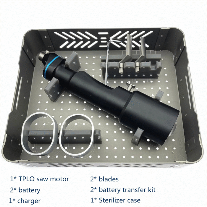 The Orthopedic Oscillating Saw – TPLO Surgical Electric Power Drill & Bone Saw is specifically designed for Tibial Plateau Leveling Osteotomy (TPLO) procedures in veterinary orthopedics. Equipped with a high-powered oscillating motor, it ensures clean and accurate bone cuts that are critical for TPLO and other advanced joint surgeries. Compatible with a variety of blade sizes, it offers surgeons flexibility and confidence during demanding operations.