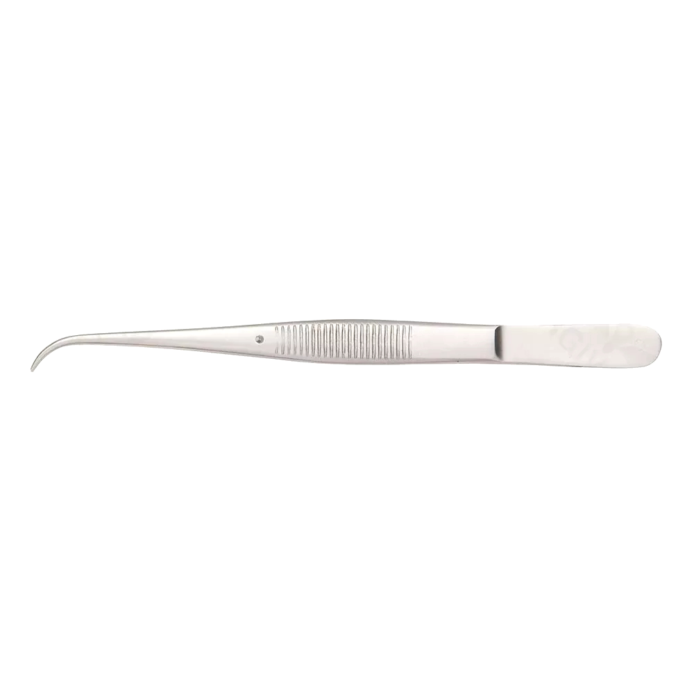 The Perry Dissecting Forceps are precision-crafted surgical instruments designed for handling, dissecting, and dressing delicate tissues with maximum control and safety. Featuring fine curved tips with serrated jaws, these forceps provide a secure, non-slip grip on soft tissue and dressing material without causing trauma or slippage. The delicate curvature of the tip allows surgeons to access confined or curved anatomical regions easily, making them ideal for plastic, general, and microsurgical procedures. Constructed from premium surgical stainless steel, they ensure durability, corrosion resistance, and compatibility with repeated sterilization. The slim, lightweight design promotes effortless manipulation and enhanced precision during prolonged surgical use.