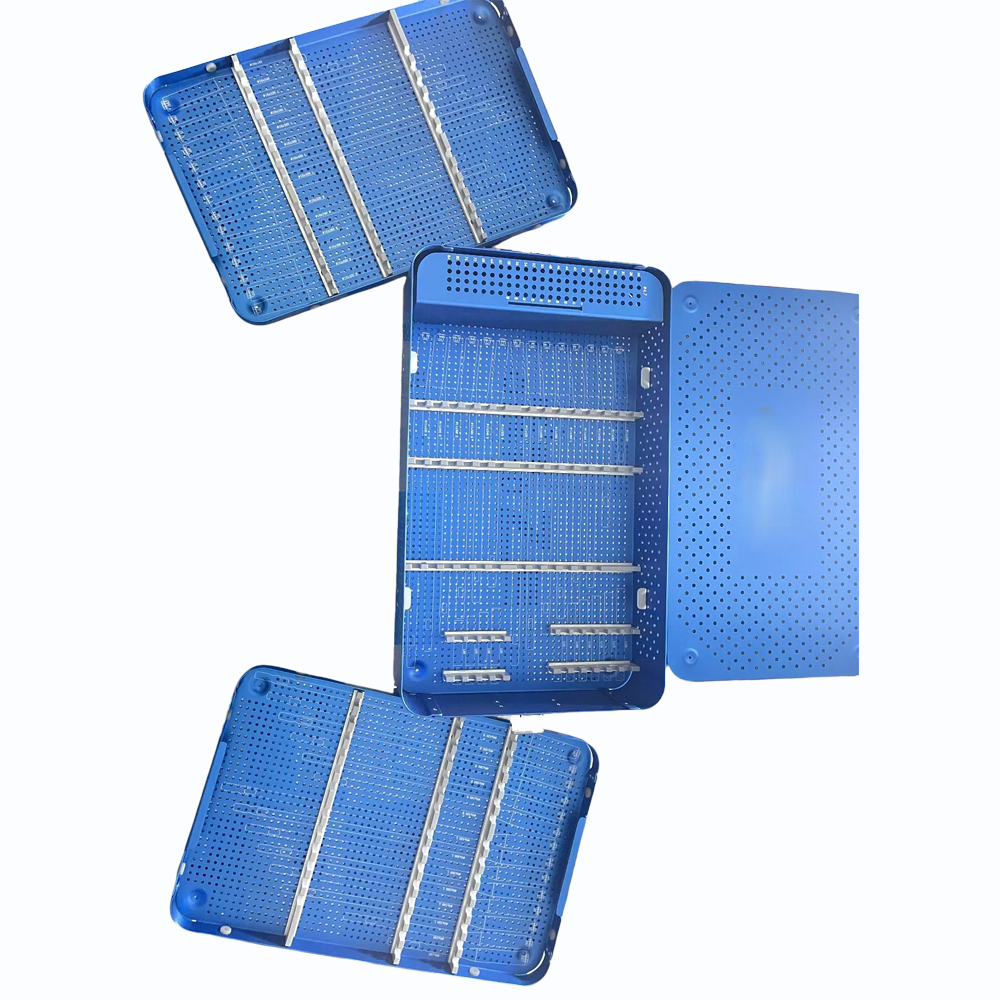 This PFNA Nail Combo – Empty Box for Nails, Blades, and Bolts – 1 Pc is designed to store and organize PFNA nails, helical blades, and bolts in a sterile and efficient manner. Constructed from durable materials suitable for repeated sterilization, the box ensures safe handling and convenient access to all components during orthopedic surgery. This organizational system streamlines workflow in proximal femoral fracture fixation using PFNA nails, reducing setup time and improving surgical efficiency.
