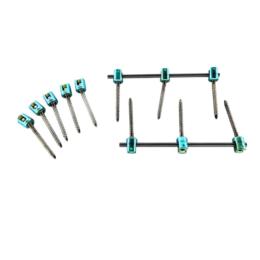 The Polyaxial Pedicle Screw & Rod Spine Set – Diameter 4.5mm, Rod Length 35–55mm, 14 Pcs Titanium is designed for secure spinal fixation and stabilization. This titanium set includes 4.5mm polyaxial screws and rods (35–55mm) for flexible angulation and accurate vertebral alignment. High-strength titanium ensures biocompatibility, corrosion resistance, and reliable mechanical stability for both human and veterinary spinal procedures.