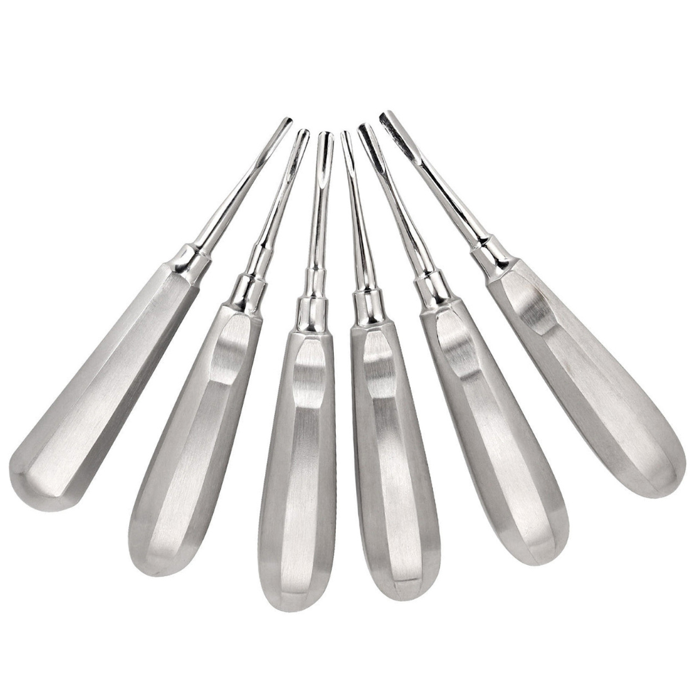 Premium Quality Dental Luxation Elevators Set of 6 – Straight & Curved Extraction Tools The Dental Luxation Elevators Set of 6 is a premium collection of straight and curved extraction tools designed for safe, efficient, and atraumatic tooth removal. Crafted from high-grade surgical stainless steel, this set is built for long-lasting durability, sharpness, and precision in every dental procedure.