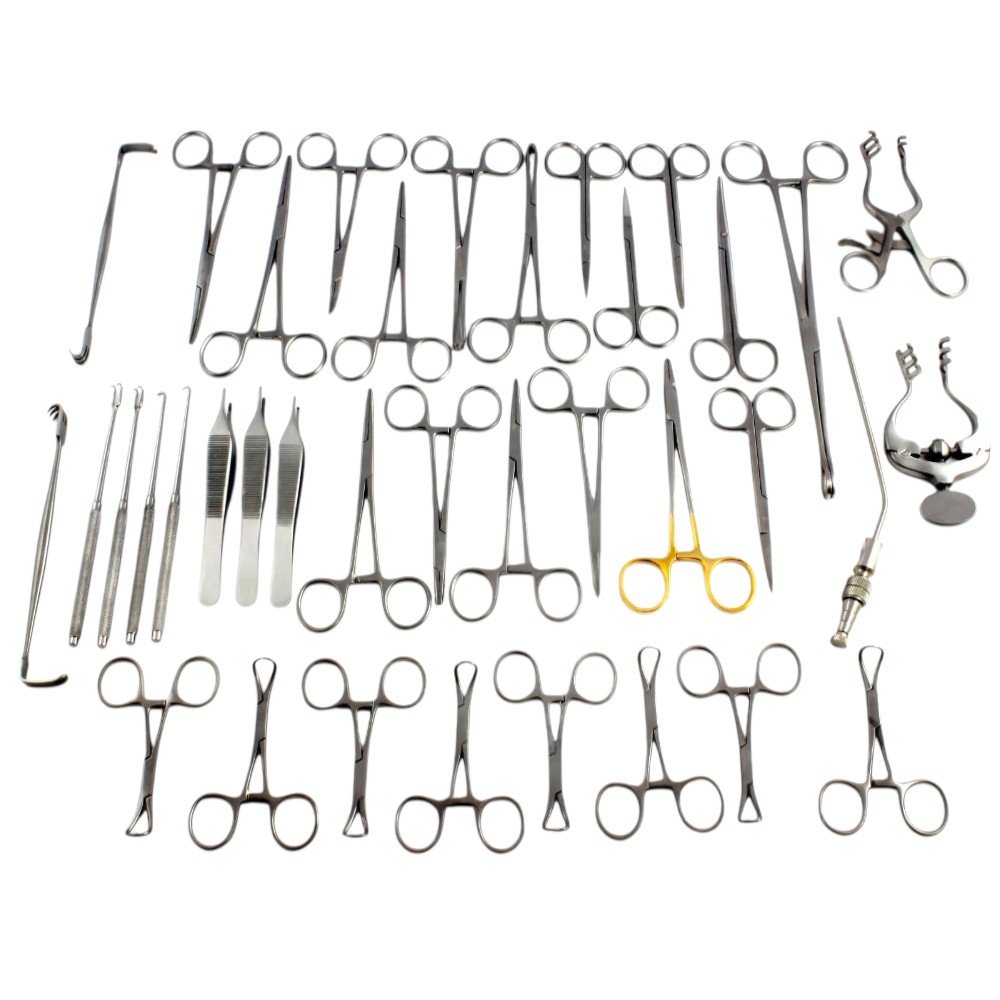 Includes scalpels, retractors, scissors, forceps, and needle holders.