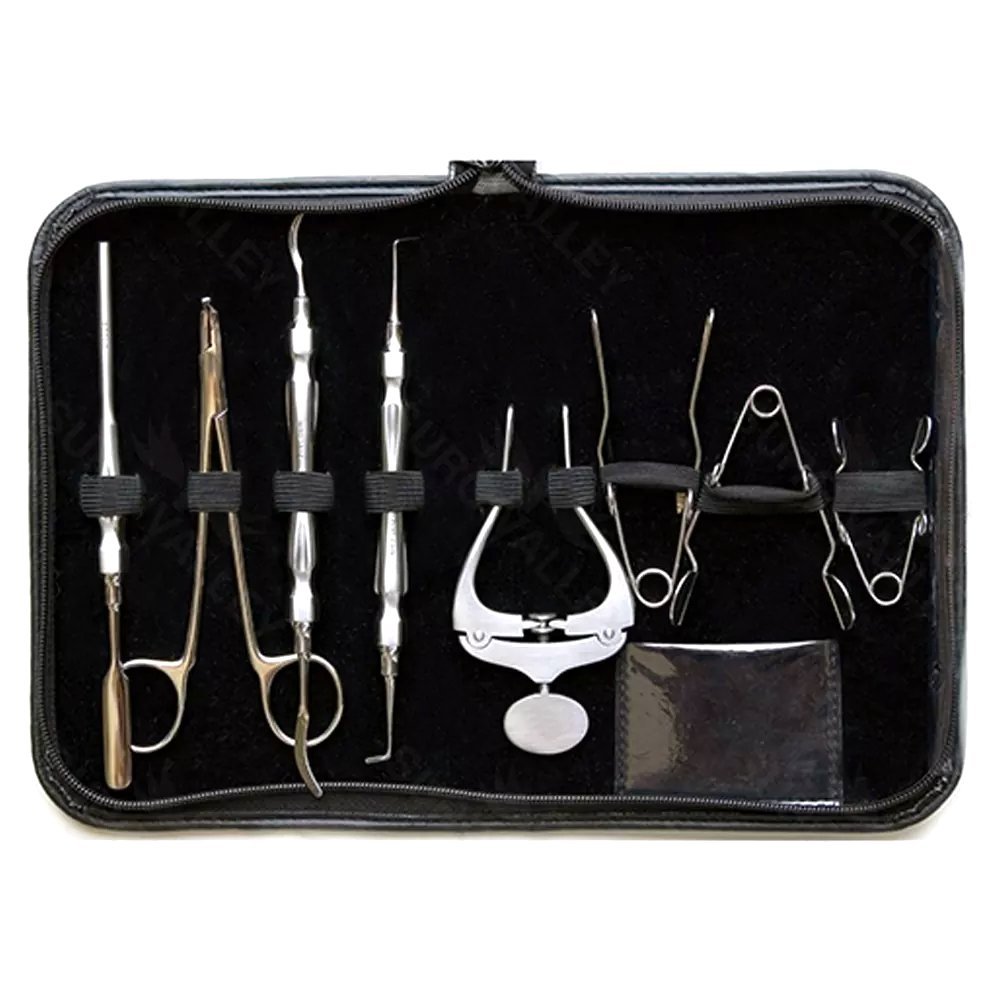 The Rabbit Dental Extraction Kit is a specialized veterinary instrument set meticulously designed for safe and precise tooth extraction in small animals, particularly rabbits and rodents. Made from O.R. grade stainless steel, each instrument offers exceptional strength, corrosion resistance, and precision. The kit includes fine elevators, luxators, extraction forceps, and root tip picks crafted to navigate delicate oral structures while minimizing trauma to soft tissues. Its ergonomic handles provide enhanced grip and control, ensuring comfort during prolonged dental procedures. Perfect for both clinical use and educational training, this kit ensures efficient, atraumatic extractions and promotes faster healing for animal patients.
