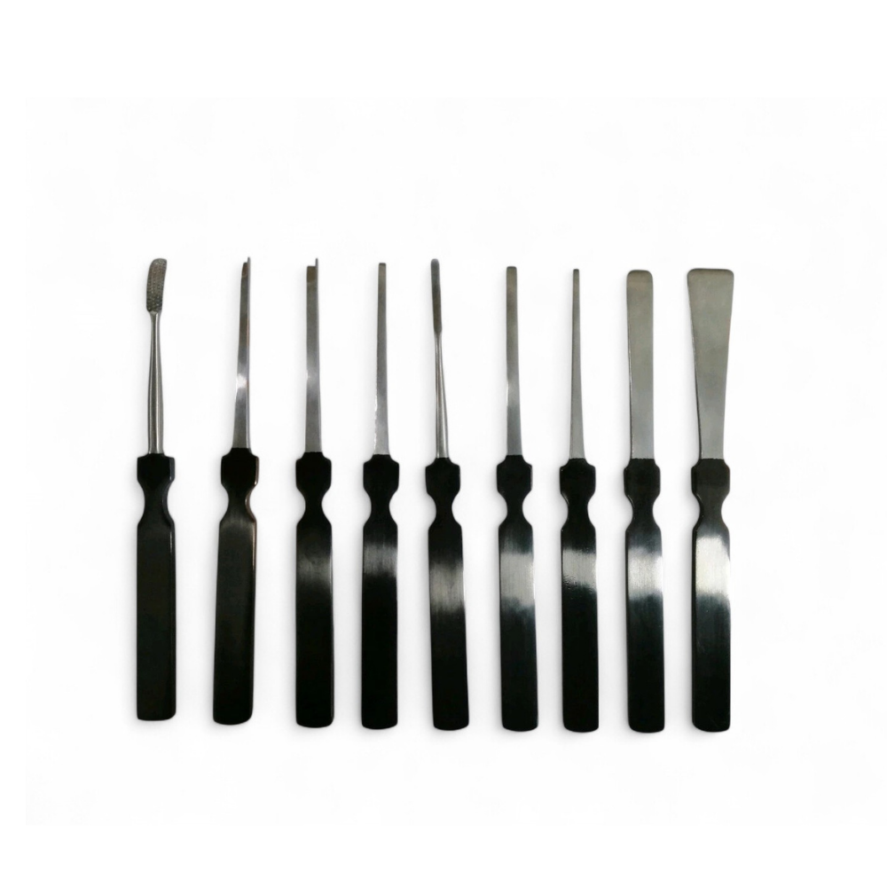 This Rhinoplasty Osteotome Set contains precision instruments essential for controlled nasal bone cutting, reshaping, and contouring. Made from high-grade surgical stainless steel, the osteotomes offer sharp, smooth edges and optimal handling for delicate nasal procedures. Suitable for both open and closed rhinoplasty, the set is fully autoclavable and reusable, ensuring reliable performance in ENT and plastic surgery environments.