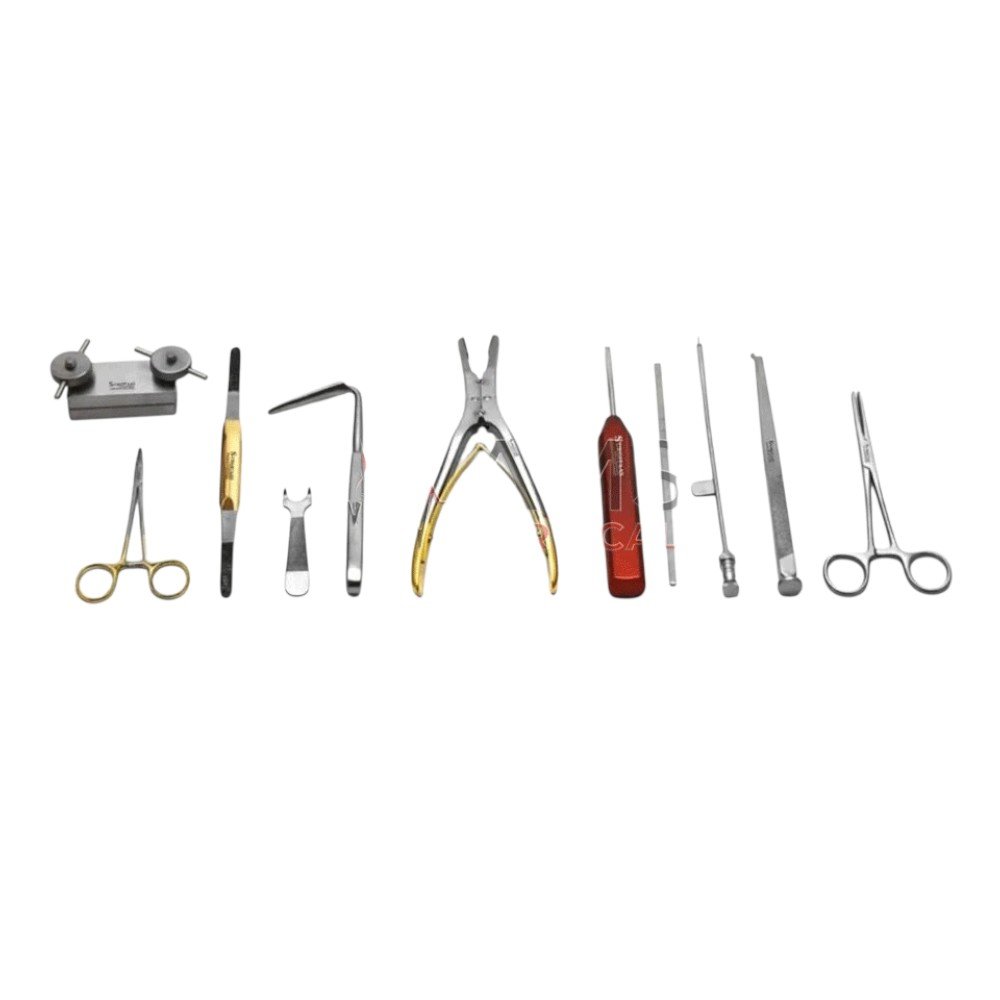 Rhinoplasty Surgery Set is a carefully designed collection of instruments specifically for nasal reconstruction and cosmetic nasal procedures. Manufactured from premium stainless steel, this set offers precision, durability, and repeated sterilization without compromising performance. It includes specialized tools such as nasal rasps, elevators, scissors, forceps, and retractors that enable surgeons to perform rhinoplasty with accuracy and control. Suitable for both functional and aesthetic nasal surgeries, this set is widely trusted by ENT specialists and plastic surgeons across the globe. Its ergonomic design ensures smooth handling and minimal patient trauma during procedures.
