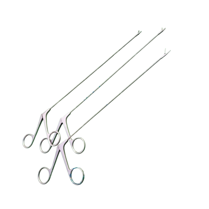 Set of 3 Micro Laryngeal Scissor, Grasper, Biopsy Cup Forceps – Shaft 2mm x 230mm with a shaft size of 2mm x 230mm is a specialized ENT surgical kit designed for advanced laryngeal microsurgery, endoscopic throat procedures, and precise tissue handling in confined surgical fields. These instruments are widely used by ENT specialists for micro laryngeal operations such as vocal cord surgery, biopsy, tumor excision, and delicate tissue dissection.