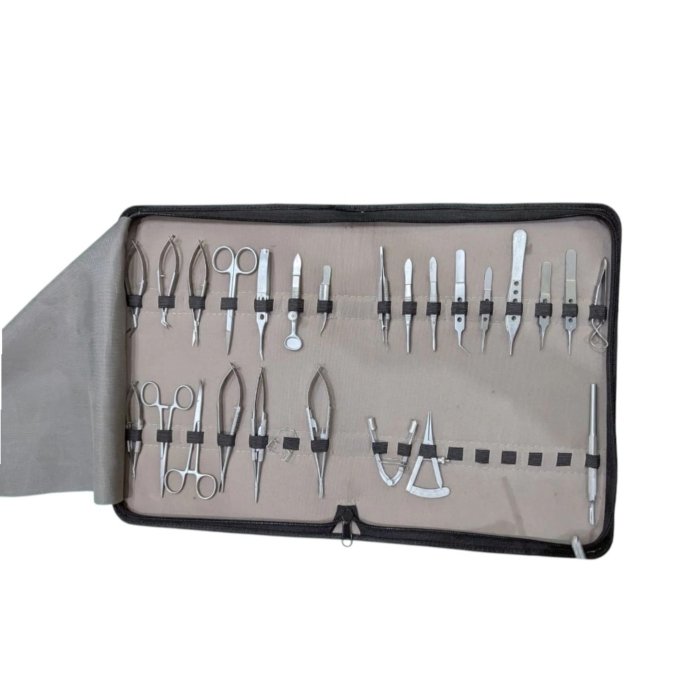The Set of O.R Grade Basic Ophthalmic Eye Microsurgery Instruments provides a complete solution for eye surgeons, hospitals, and training labs. Designed from O.R grade stainless steel, the set includes scissors, forceps, needle holders, retractors, and auxiliary instruments for a wide range of eye surgeries.