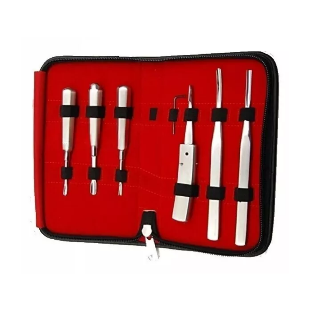This Set of 6 Dental Incisors & Wolf Tooth Equine Elevators – Stainless Steel is specifically designed for the extraction of incisors and wolf teeth in horses. Each elevator features an ergonomic handle and precision-angled blade for controlled tooth elevation, minimizing trauma to surrounding tissues. Crafted from high-strength stainless steel, the instruments provide excellent durability, corrosion resistance, and reliability in demanding veterinary environments. The carefully shaped tips allow for easy insertion between tooth and ligament, ensuring safe and efficient dental extractions. Essential for equine dentists, veterinarians, and field practitioners, this set supports routine and complex equine oral care.