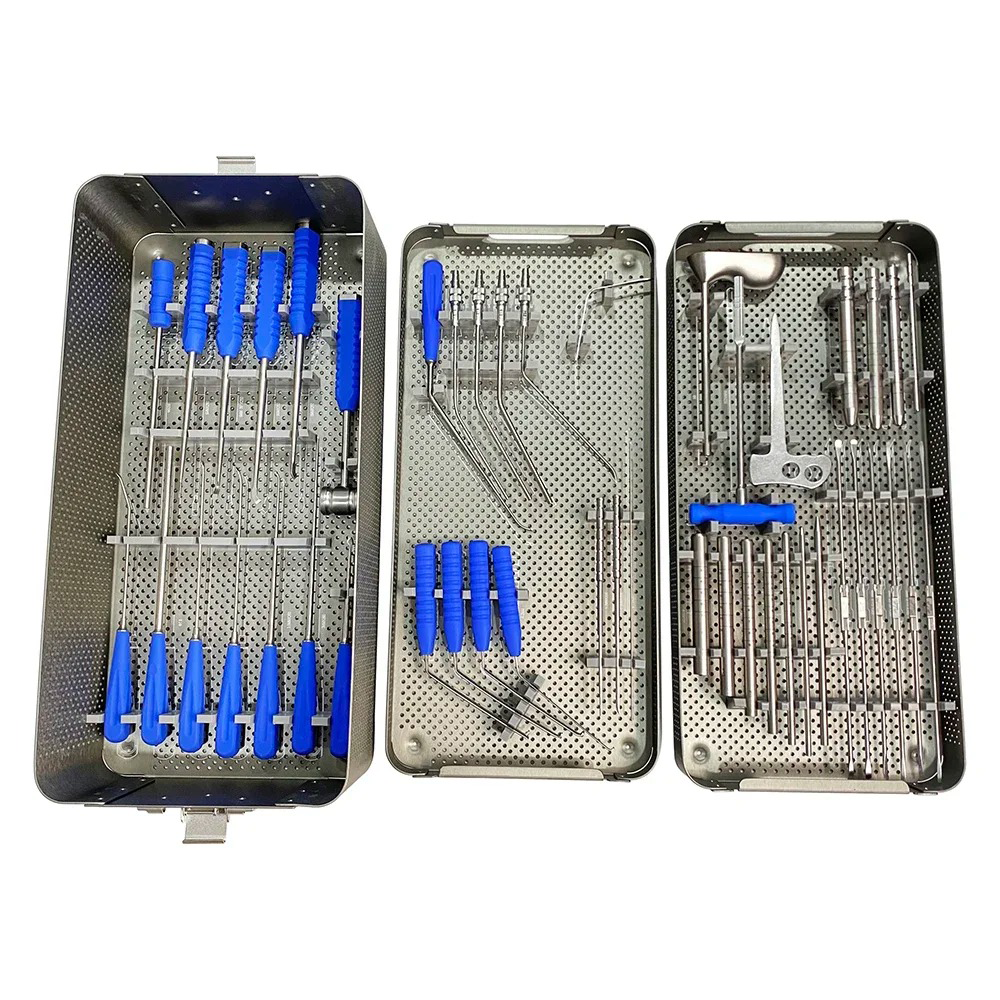 The Spinal Surgery Unilateral Biportal Endoscopic (UBE) Instrument Set – Orthopedic Spine Surgery Kit is specifically designed for advanced minimally invasive spine procedures. This comprehensive kit supports decompression, discectomy, and fusion surgeries performed under the UBE technique, providing surgeons with improved visualization, precision, and reduced patient recovery time. Manufactured from premium stainless steel and medical-grade materials, the instruments ensure durability and consistent surgical outcomes in spinal surgery.