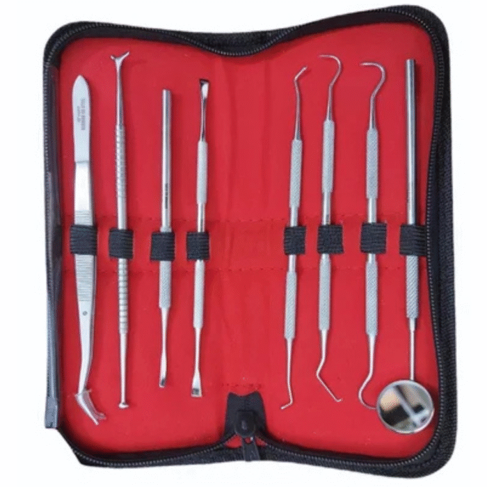 Stainless Steel Dental Instrument Kit The Stainless Steel Dental Instrument Kit is a premium collection of essential tools designed for dentists, oral surgeons, hygienists, and dental students. Made from high-grade surgical stainless steel, this kit ensures maximum durability, resistance to corrosion, and long-term reliability. Each instrument is carefully engineered to provide precision, comfort, and efficiency in various dental procedures.