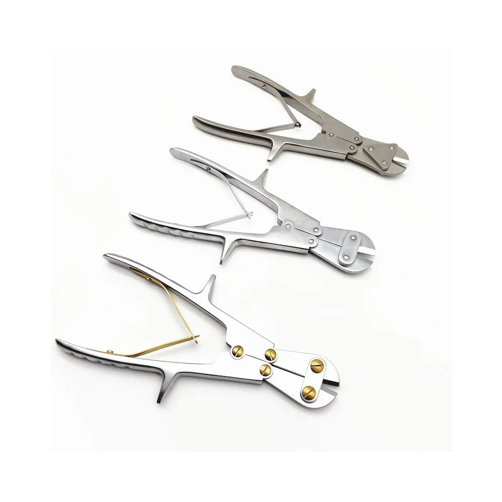 The Stainless Steel Kirschner Wire Cutter – Orthopedic Pin Cutter & Wire Scissors for Human and Veterinary Use is a specialized surgical instrument engineered for cutting K-wires, Steinmann pins, and other orthopedic fixation wires with ease and precision. Constructed from heavy-duty stainless steel, the cutter provides powerful leverage while maintaining a sharp, controlled cut. It is suitable for both human orthopedic trauma surgery and veterinary orthopedic procedures.