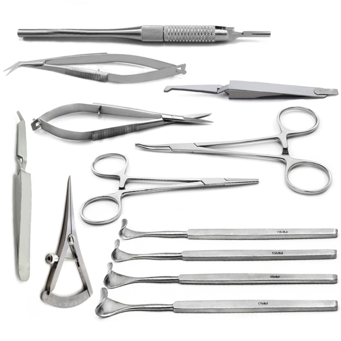 The Student Ophthalmic Microsurgery Training Kit – Micro Minor Surgical Instrument Set is tailored for medical students, residents, and trainees practicing basic surgical skills. Compact yet effective, this kit includes scissors, forceps, tweezers, and needle holders, covering essential microsurgery needs.