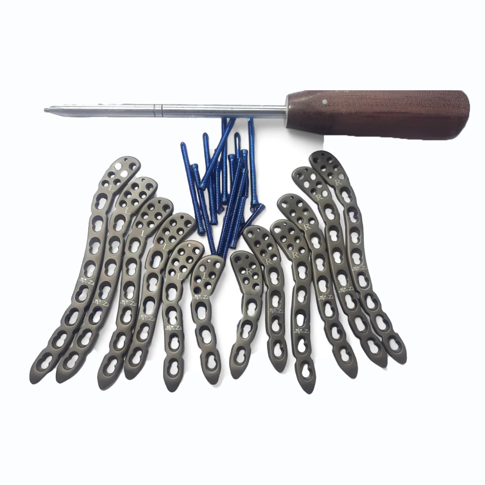 The Superior Anterior Clavicle S Locking Plate (3–8 Holes) L&R – Titanium (114 pcs) is designed for the fixation of midshaft and lateral third clavicle fractures in veterinary and small animal orthopedic procedures. Its S-shaped contour ensures anatomical fit along the anterior clavicle, reducing soft tissue irritation. Manufactured from Titanium, the plate combines strength, corrosion resistance, and biocompatibility. The set includes left and right plates with 114 screws, ensuring complete surgical readiness.