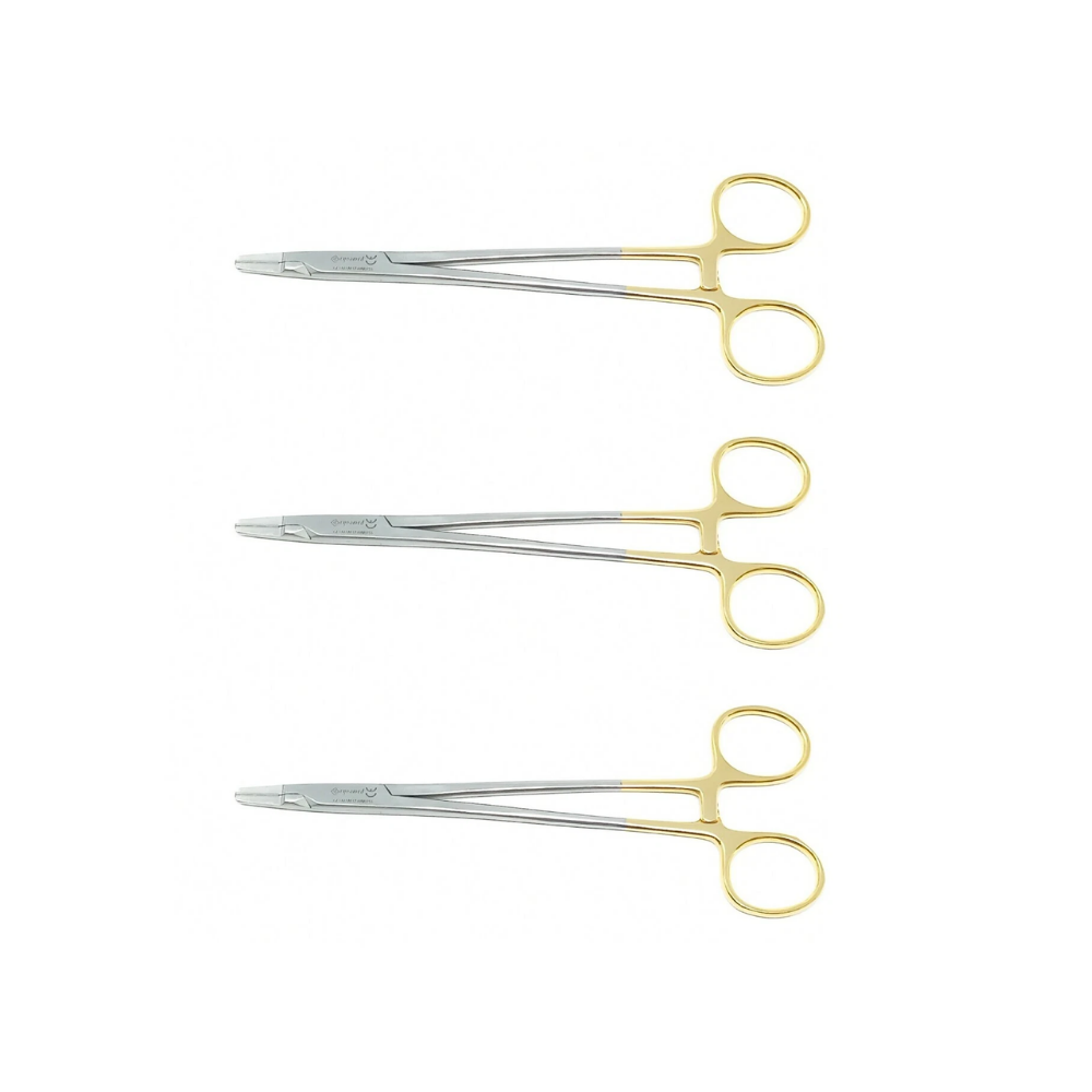 This TC Premium Mayo-Hegar Needle Holder – 8″ with Tungsten Carbide Inserts (3 Pcs) is designed to provide maximum control and stability during suturing across a wide range of surgical procedures. At 8 inches long, the instrument offers optimal reach and leverage for medium and large needle sizes. The tungsten carbide inserts provide exceptional grip strength and long-lasting wear resistance, ensuring secure needle holding without slippage. With a solid stainless-steel body, precision ratchet mechanism, and ergonomic finger rings, these holders are ideal for high-precision suturing in general, dental, veterinary, and specialty surgeries.