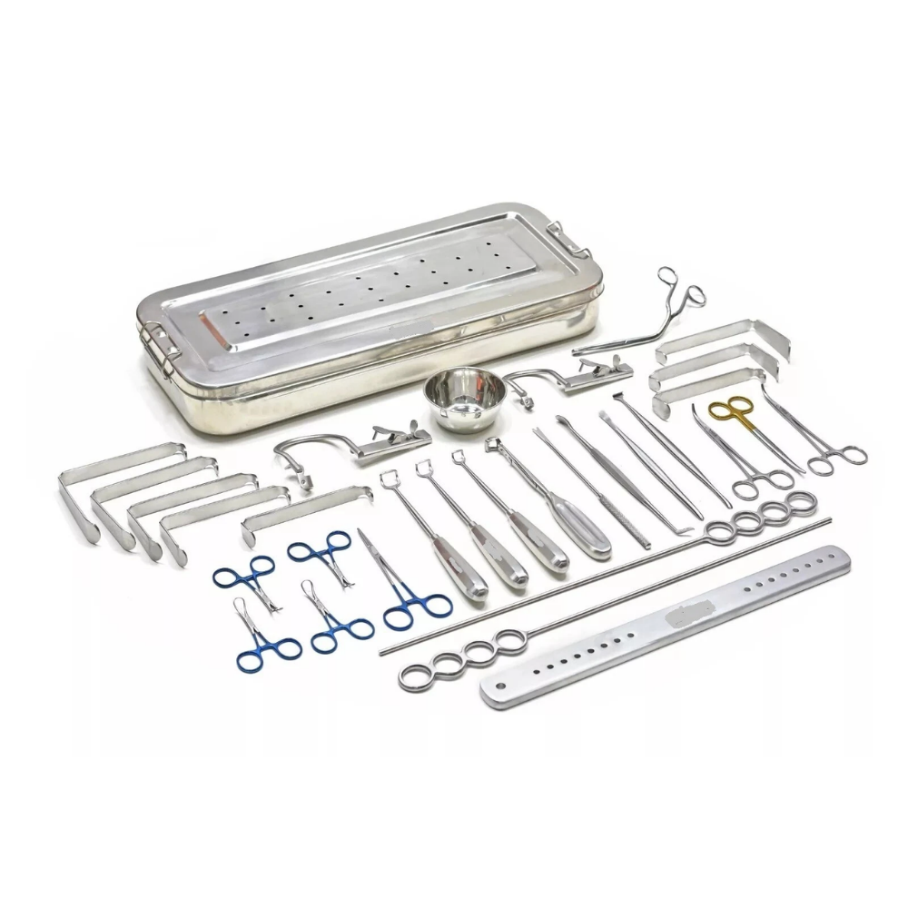 Organized in a heavy-duty steel box for protection and sterilization