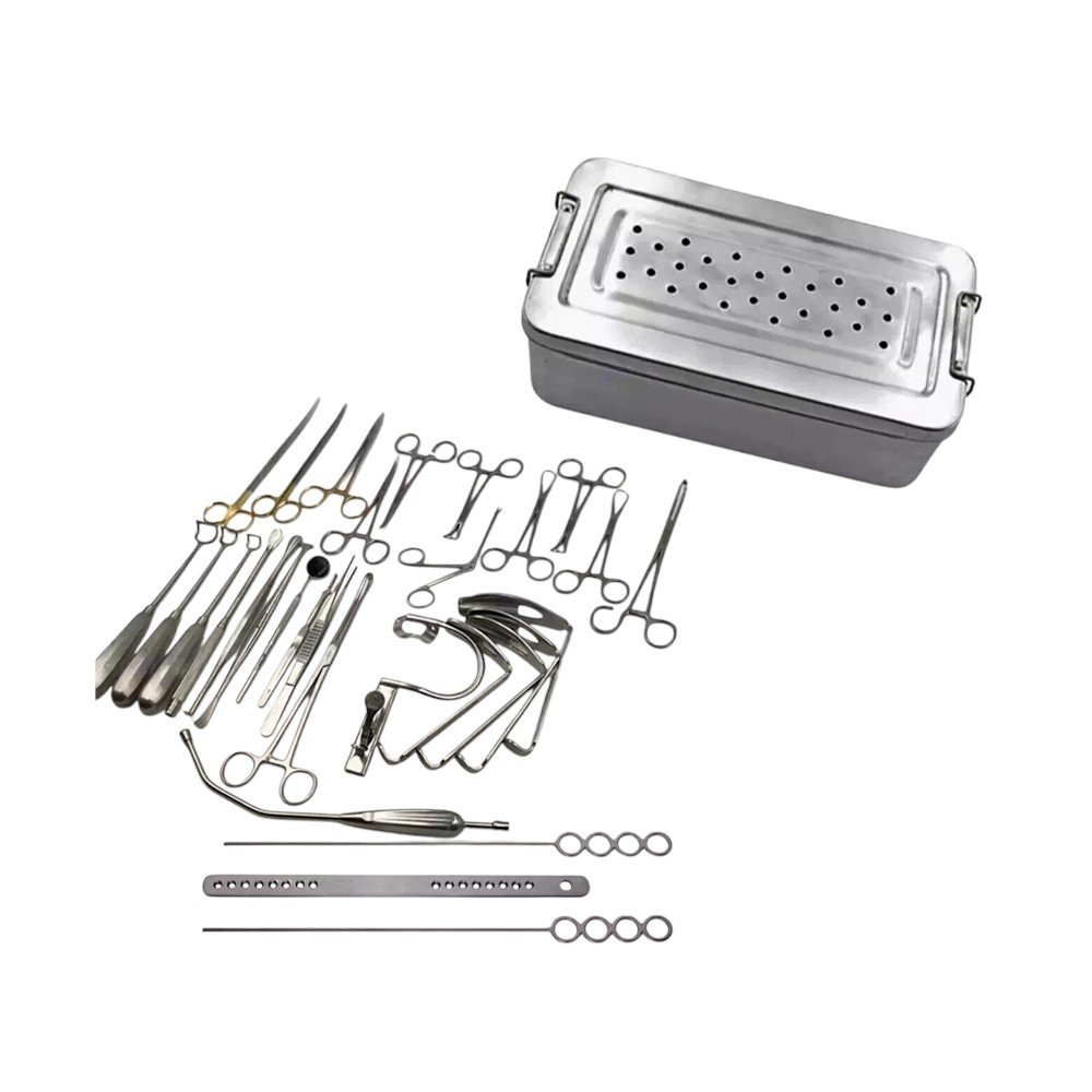 This 30-piece tonsillectomy and adenoidectomy set is a specialized surgical kit designed for ENT professionals. It includes all essential instruments required to safely and effectively remove tonsils and adenoids in both pediatric and adult patients. The set features instruments such as tonsil holding forceps, adenotomes, curettes, scalpels, scissors, and retractors, all crafted from premium stainless steel for long-lasting durability and sterility. The smooth, ergonomic designs ensure comfort for the surgeon while minimizing trauma to the patient.