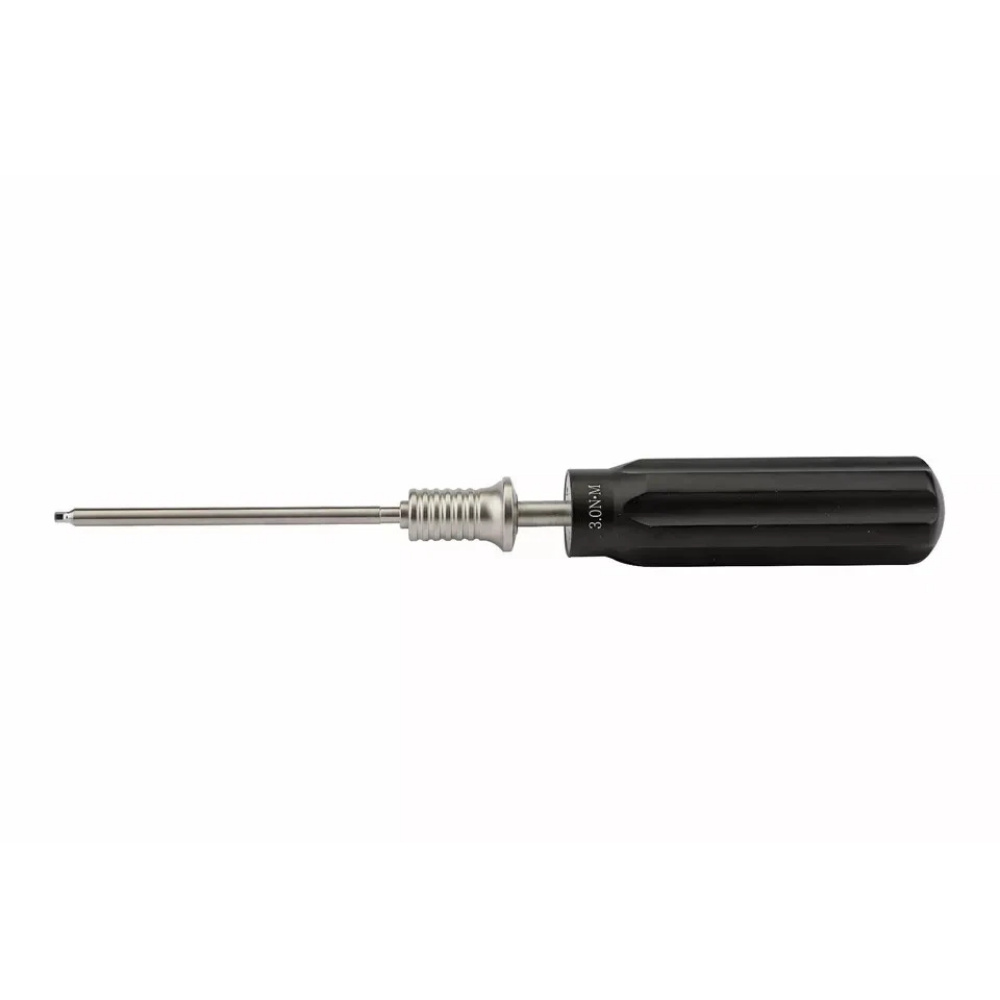 The Torque-Limited Screwdriver Handle is a specialized veterinary orthopedic instrument designed to prevent over-tightening and screw damage during implant placement. Engineered with a torque-regulating mechanism, it delivers consistent and controlled torque output, ensuring safe and accurate screw insertion during fracture repair and plate fixation.