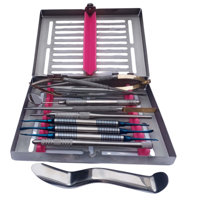 Ultimate Dental Soft Tissue Surgery Kit The Ultimate Dental Soft Tissue Surgery Kit is a premium collection of surgical instruments designed to perform precise and efficient soft tissue procedures in dentistry. Whether used for periodontal surgeries, flap designs, gingivectomy, frenectomy, crown lengthening, or delicate grafting procedures, this kit ensures accuracy, safety, and control for dental professionals.