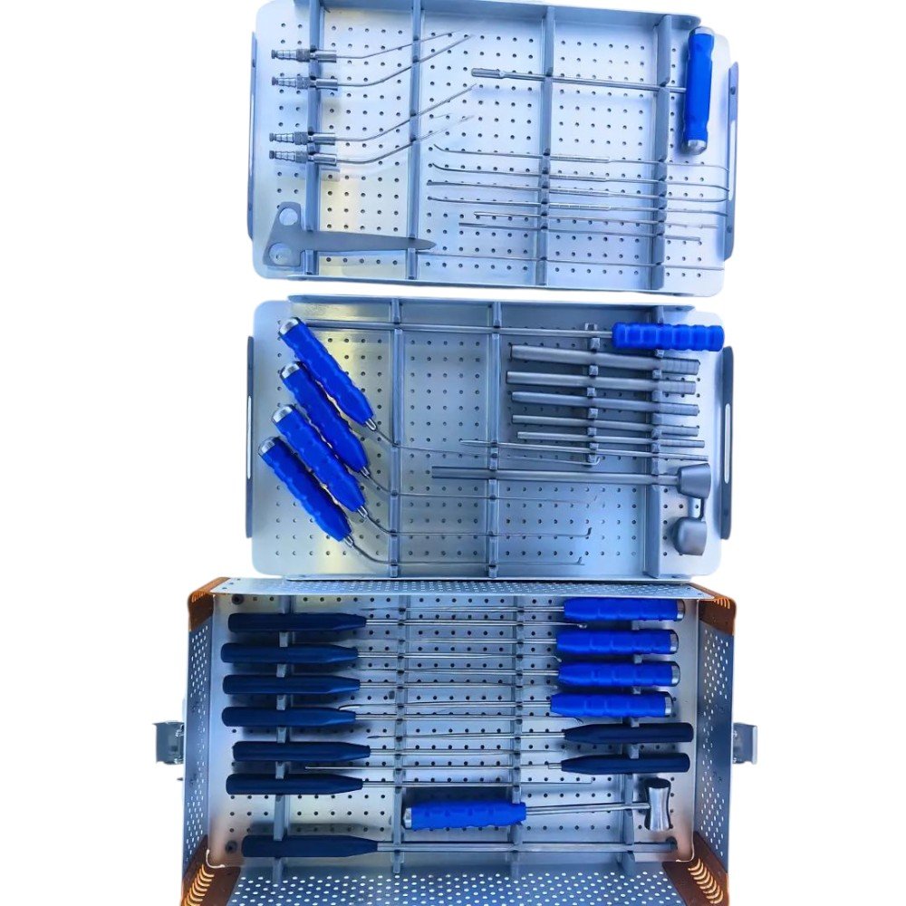 Complete UBE biportal spine instrument set for minimally invasive procedures.
