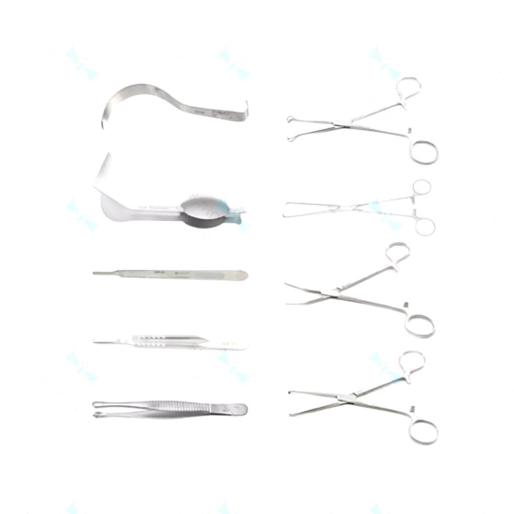 • Full surgical set for vaginal tubal ligation procedures.