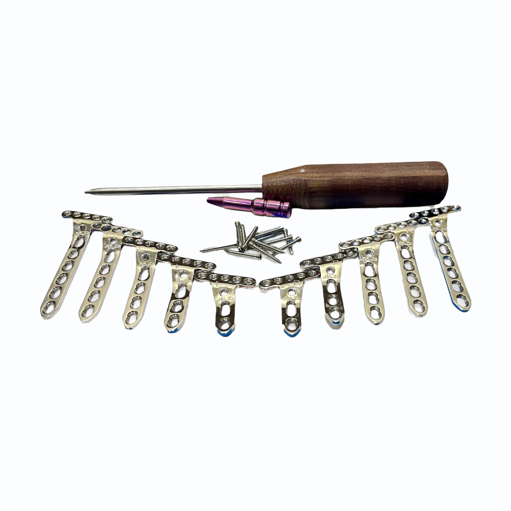 This Variable Angled Locking Extra-Articular Oblique Plate – 88 pcs SS 316L is engineered for fixation of complex extra-articular fractures requiring stable, angular-stable constructs. Made from surgical-grade SS 316L stainless steel, the plate provides excellent corrosion resistance and long-term mechanical durability. Its variable-angle locking design allows surgeons to optimize screw trajectory for fragment capture, while the oblique contour adapts to anatomical geometries for secure fracture stabilization. The 88-piece set includes all compatible locking screws for a complete surgical solution.