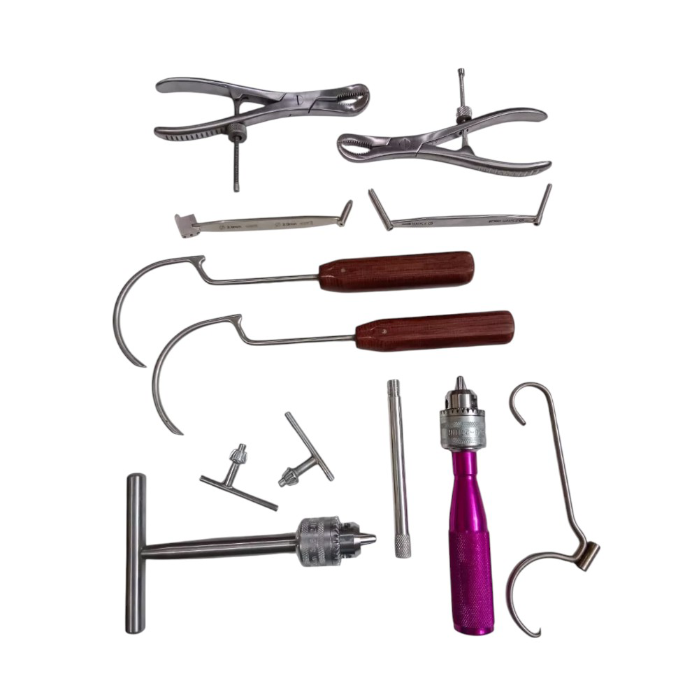 The Veterinary Orthopedic Surgical High Quality Instruments Set  is a premium selection of essential orthopedic instruments specifically tailored for veterinary bone surgeries. Designed from medical-grade stainless steel, this compact kit ensures long-lasting performance, superior strength, and full compatibility with sterilization methods such as autoclaving.