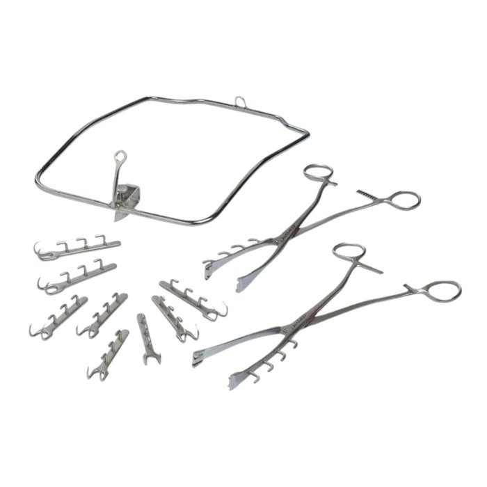 • Includes specialized retractors, forceps, and cutting tools
