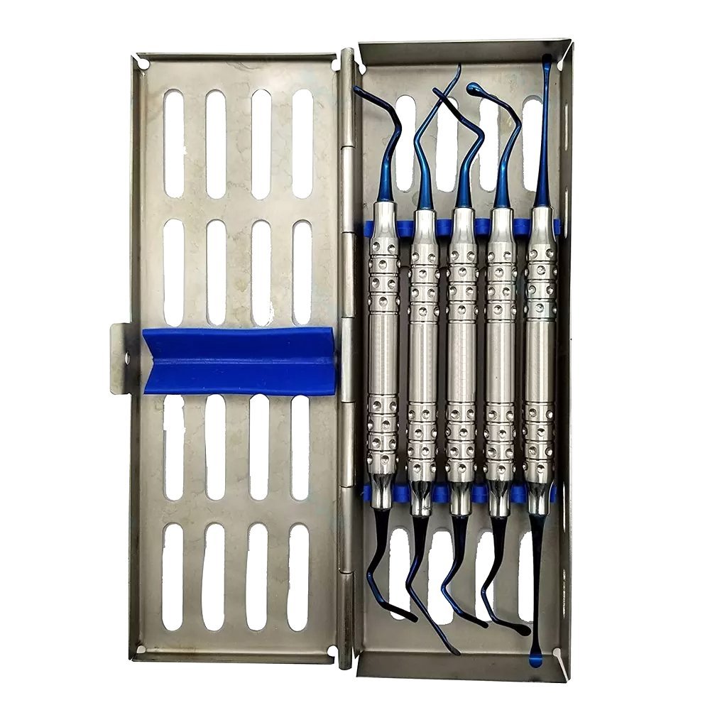 The Vista Tunneling Kit – 5 Pcs Blue Plasma Coated Dental Surgical Instrument Set (German Steel) is a premium microsurgical instrument set designed for advanced periodontal and implant procedures involving soft tissue management and flap tunneling techniques. Engineered with precision German stainless steel, each instrument features a blue plasma titanium coating that enhances surface hardness, corrosion resistance, and aesthetic appeal.