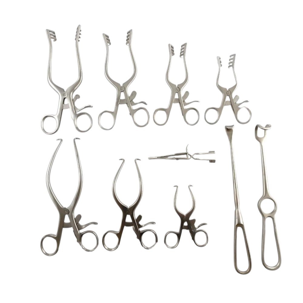 Each retractor is carefully constructed from high-tensile surgical stainless steel, ensuring rigidity, fine control, and resistance to wear. This set offers a wide range of self-retaining and manual retractors, allowing surgeons to maintain a clear operative field with minimal hand fatigue. Perfect for orthopedic, spine, ENT, and general surgery applications, the set represents professional quality and surgical reliability.